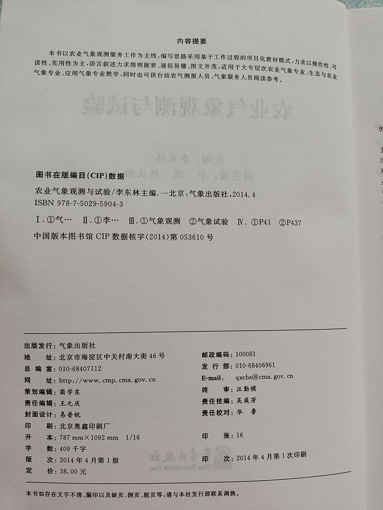 农业气象观测与试验李东林编农业气象研究基础自然物候观测土壤水分测定畜牧气象观测农业气象学技术人员参考书气象书籍气象出版 社