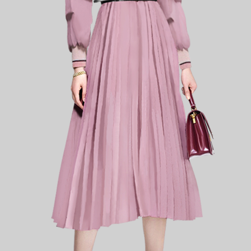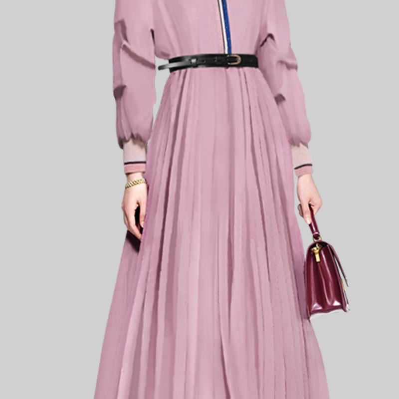 高腰V领长袖 百褶裙 连衣裙女2025年秋冬小香风粉红色收腰显瘦衬衫