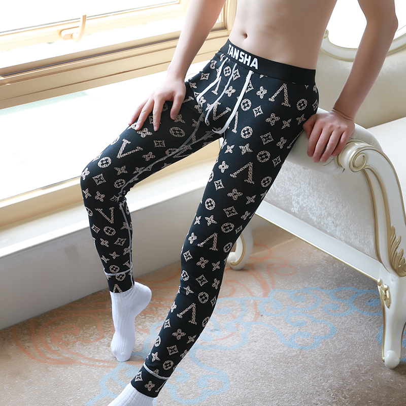 加绒线裤 男纯棉全棉潮流紧身打底裤 保暖裤 冬季 花男士 男生衬裤 秋裤