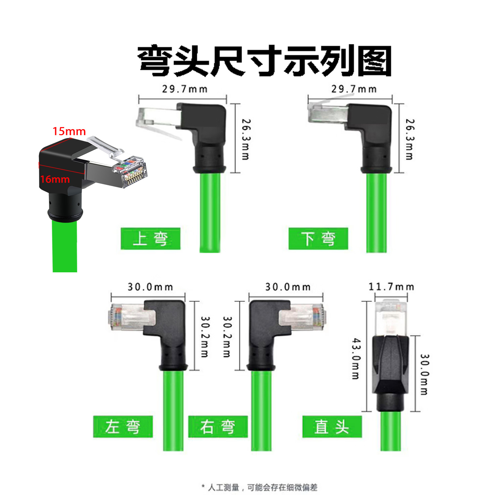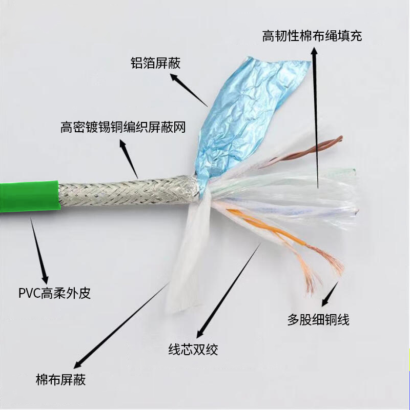 绿色超六6类弯头工业网线Profinet高柔拖链千兆弯头网线cat6A