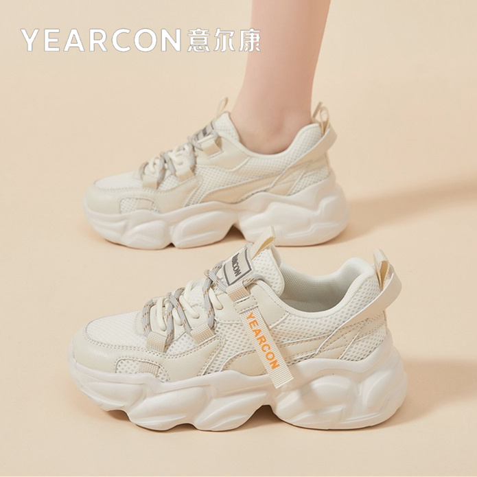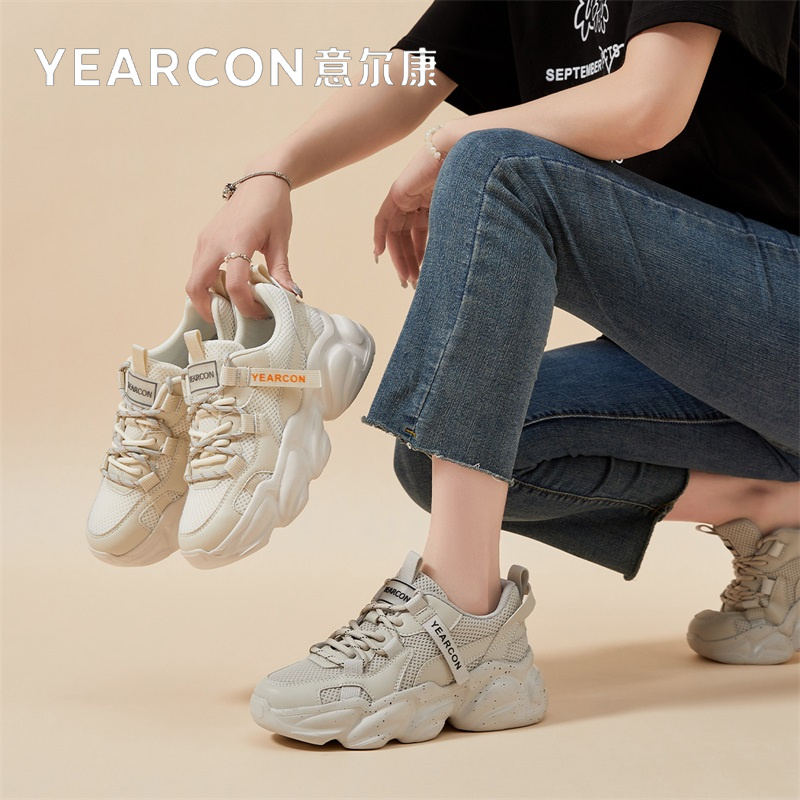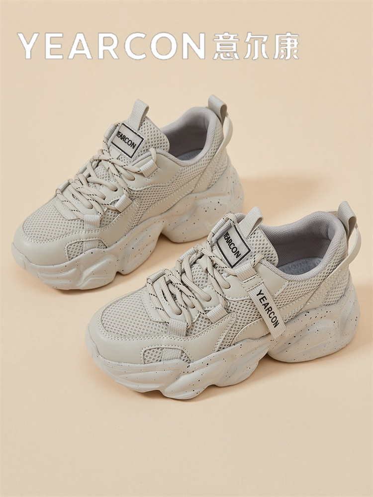 女鞋 增高运动休闲鞋 2025新款 显脚小透气网鞋 春季 意尔康厚底老爹鞋