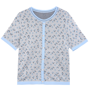 T恤女2024新款 针织衫 夏季 时尚 上衣薄 米兰登妈妈装 中老年女装 夏装
