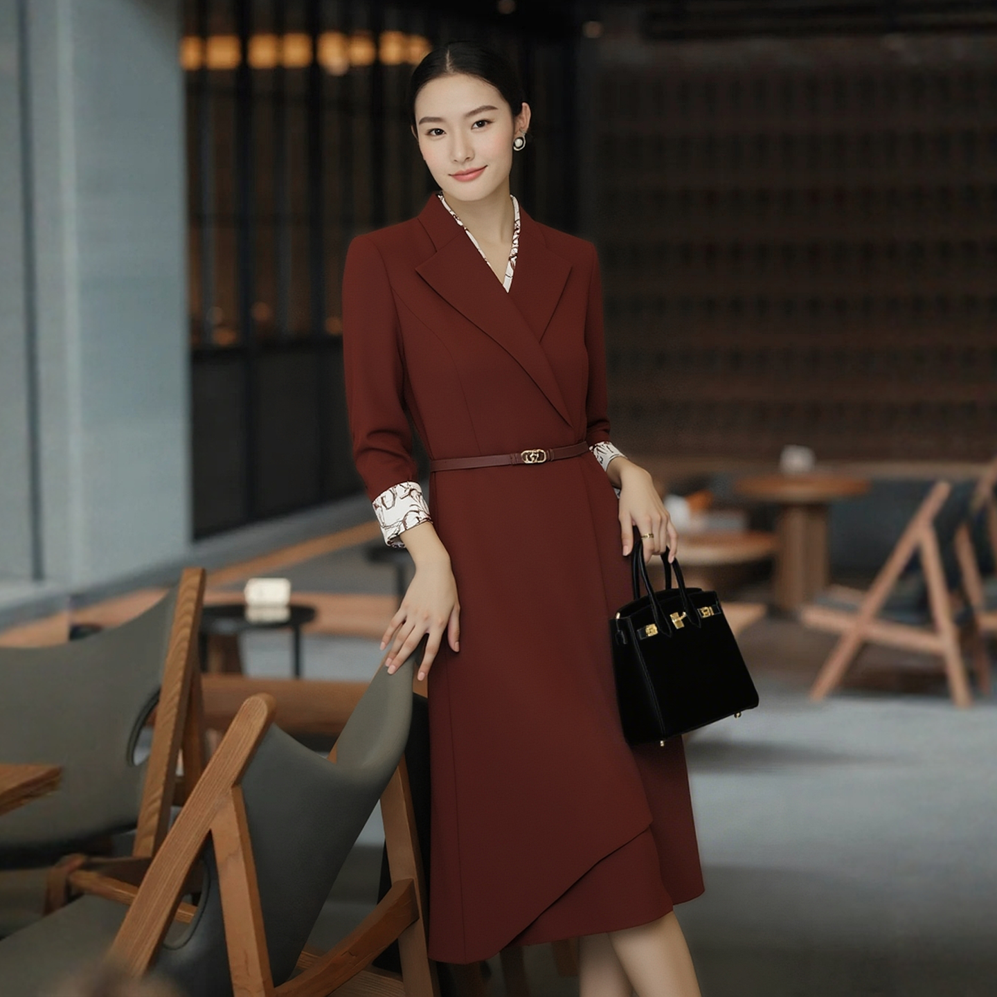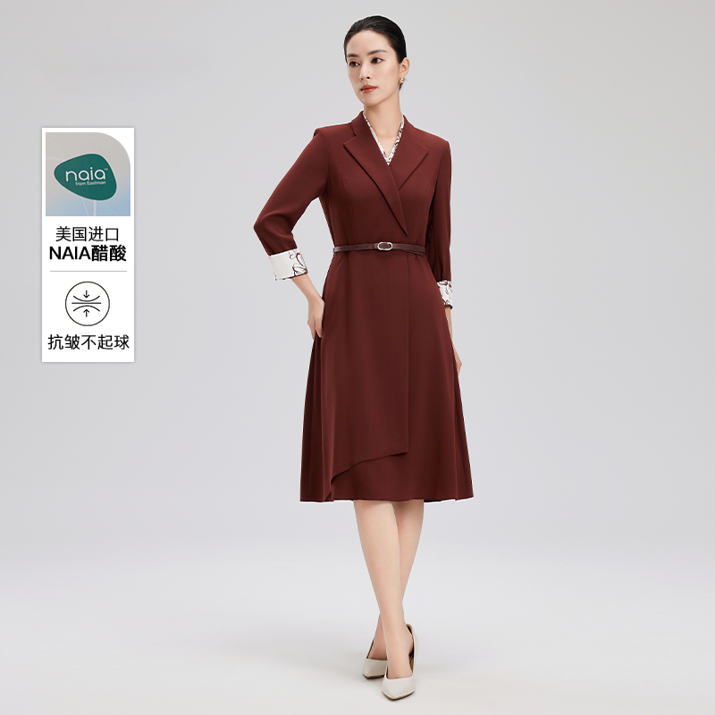 透气吸汗裙子 新款 NAERSI娜尔思钉珠长袖 连衣裙上下拼接2025年秋季