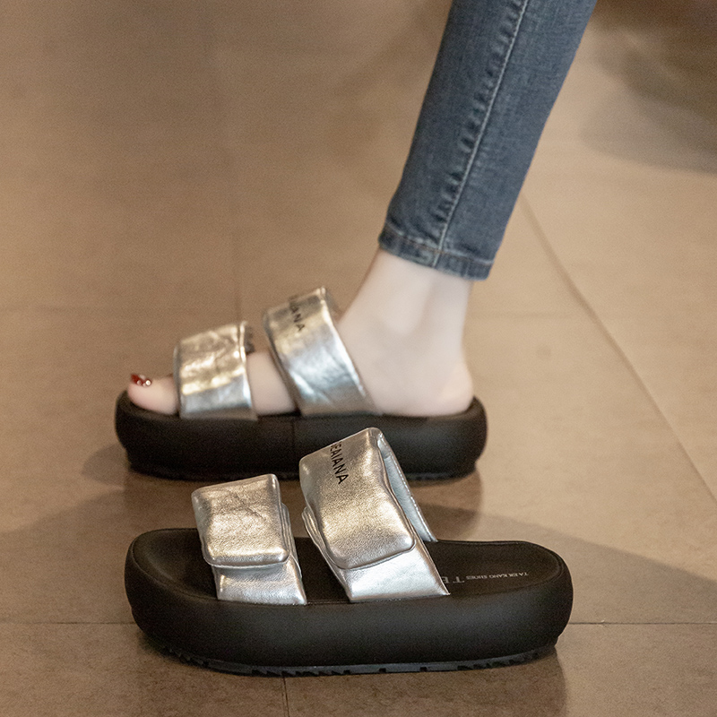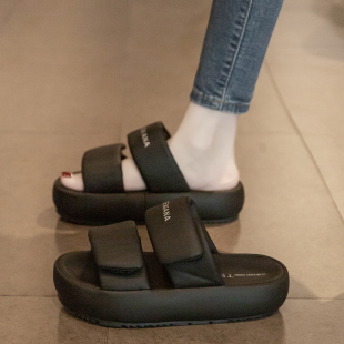 外穿2025年新款 时尚 厚底松糕凉鞋 女款 高级感拖鞋 一字凉拖鞋 女夏季