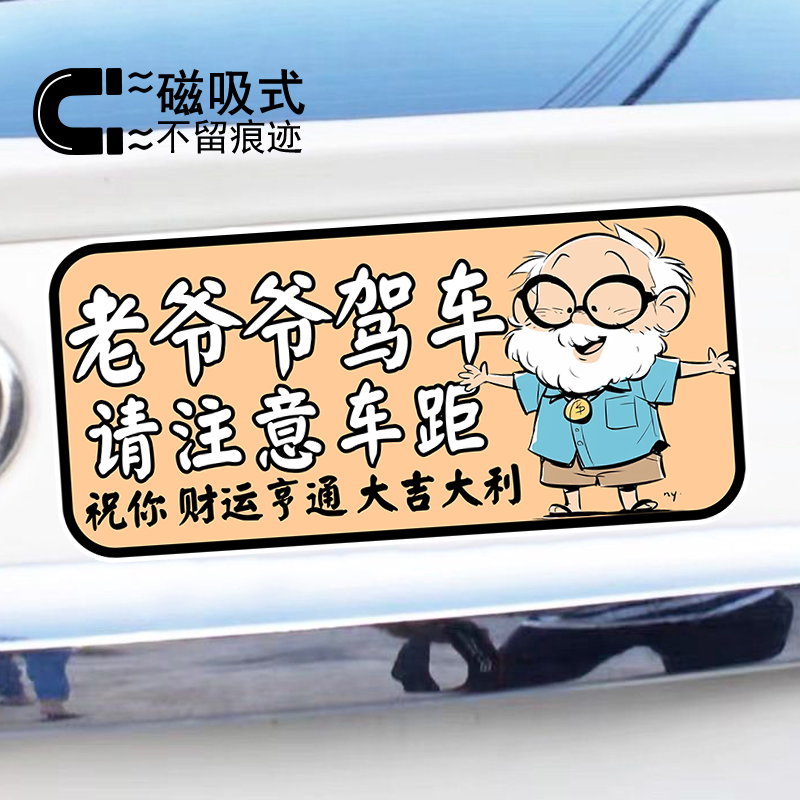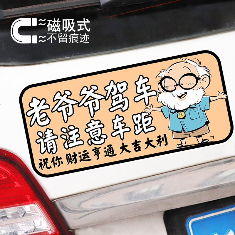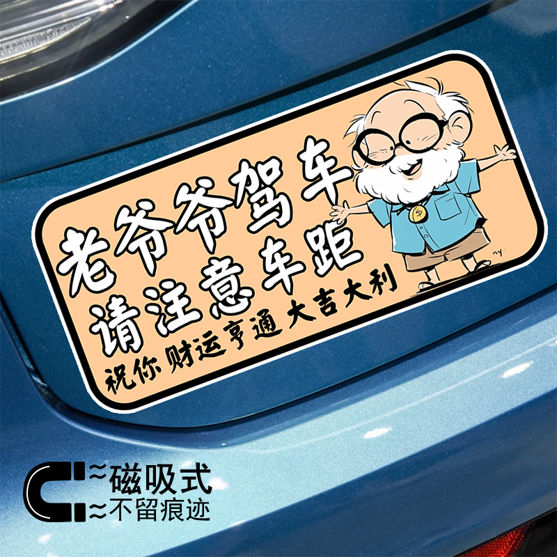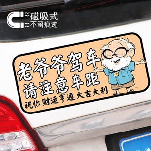 老爷爷驾车请注意车距个性 反光磁性车身贴老年人驾驶磁吸车贴