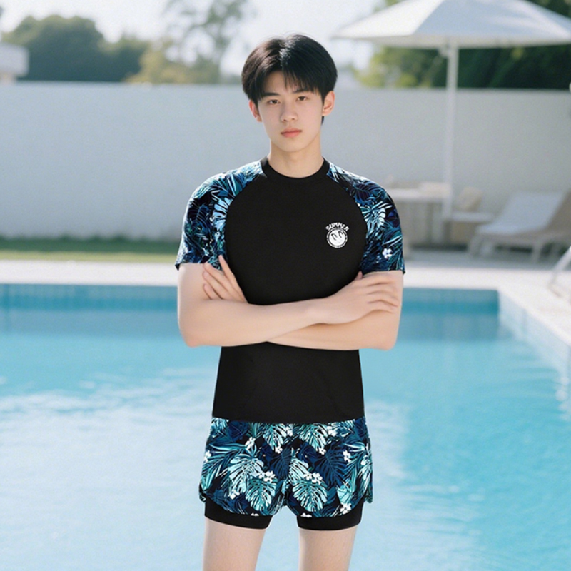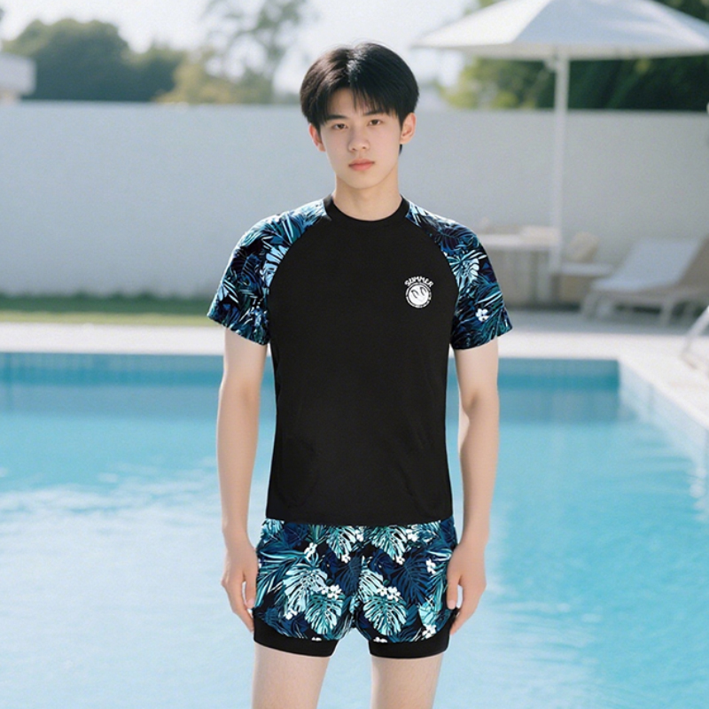 游泳衣男青少年初中生大童胖男孩成人泳裤 中考专业训练游泳套装