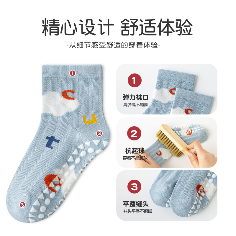 宝宝袜子夏季 男童四季 网眼纯棉 袜室内夏薄款 儿童地板袜防滑隔凉鞋