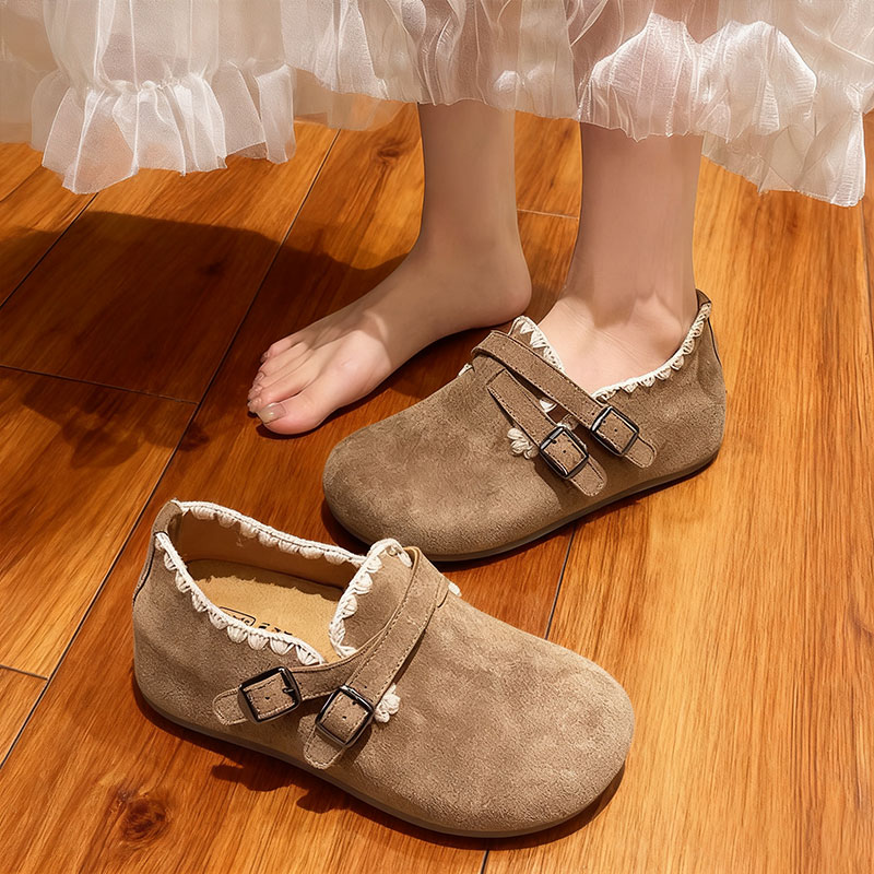 女2025秋季 博肯乐福鞋 新款 豆豆鞋 一脚蹬单鞋 厚底内增高全包勃肯鞋