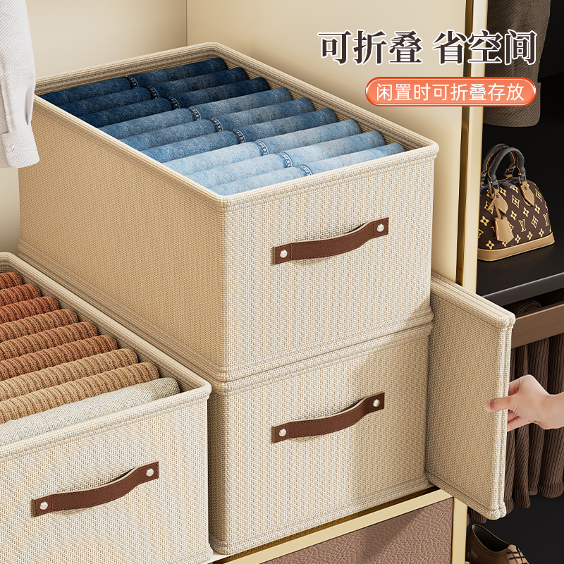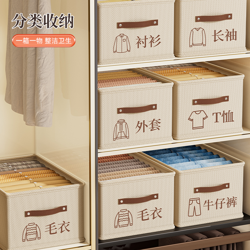 拍1发4衣服收纳筐神器布艺装 子整理盒 衣物衣柜分层收纳箱家用框裤