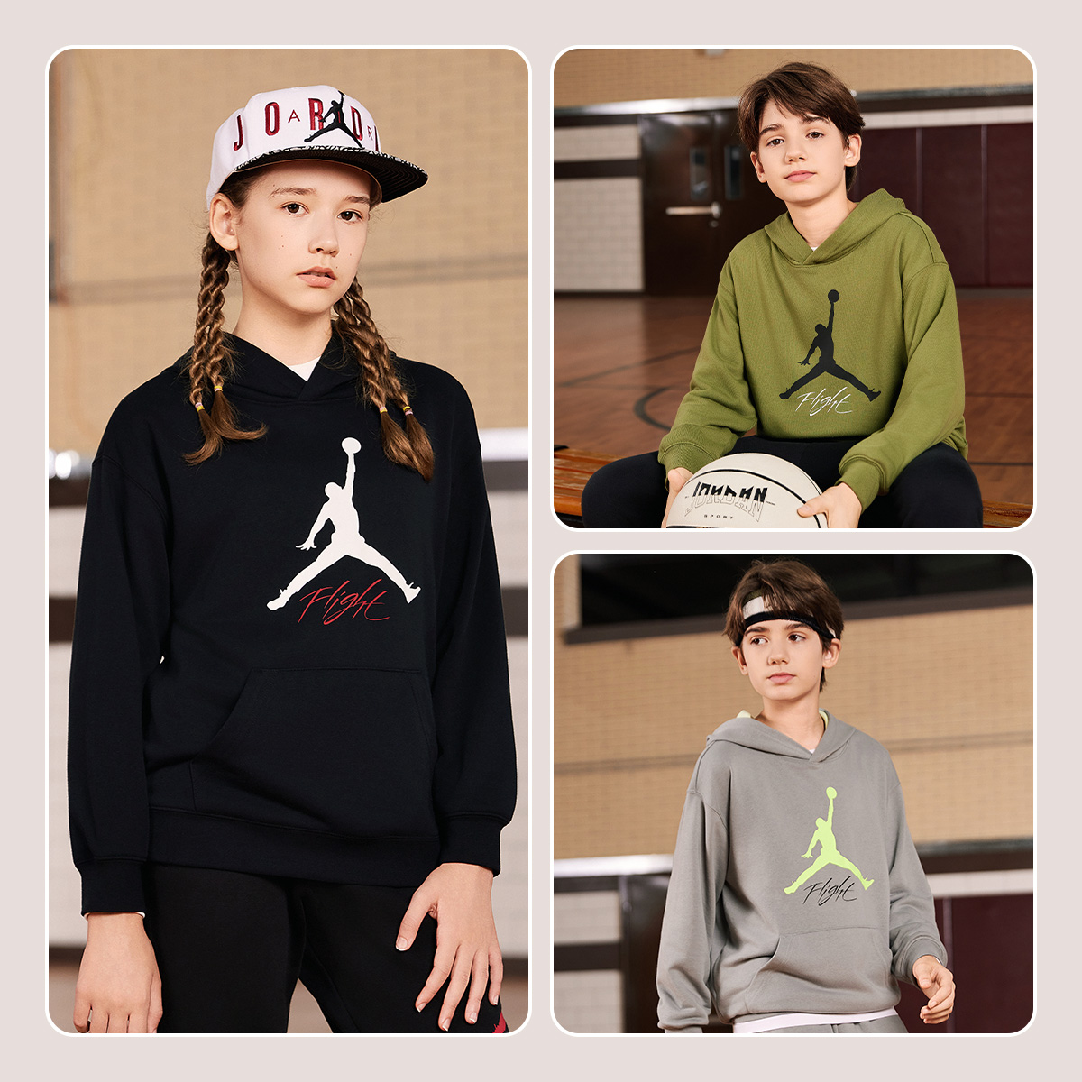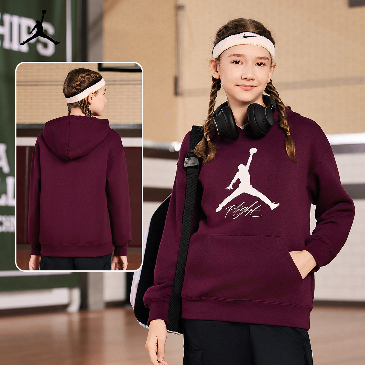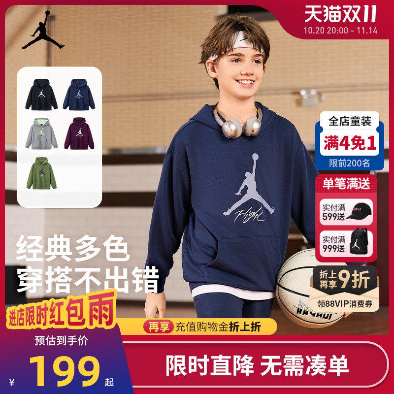 上衣JD2532294 中大童女童长袖 Jordan儿童装 男童连帽卫衣2025新款