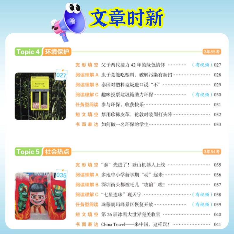 一本热考英语时文阅读理解完形填空七八年级中考第8辑第7辑第6辑英语专项训练初中通用英语任务型阅读短文填空书面表达