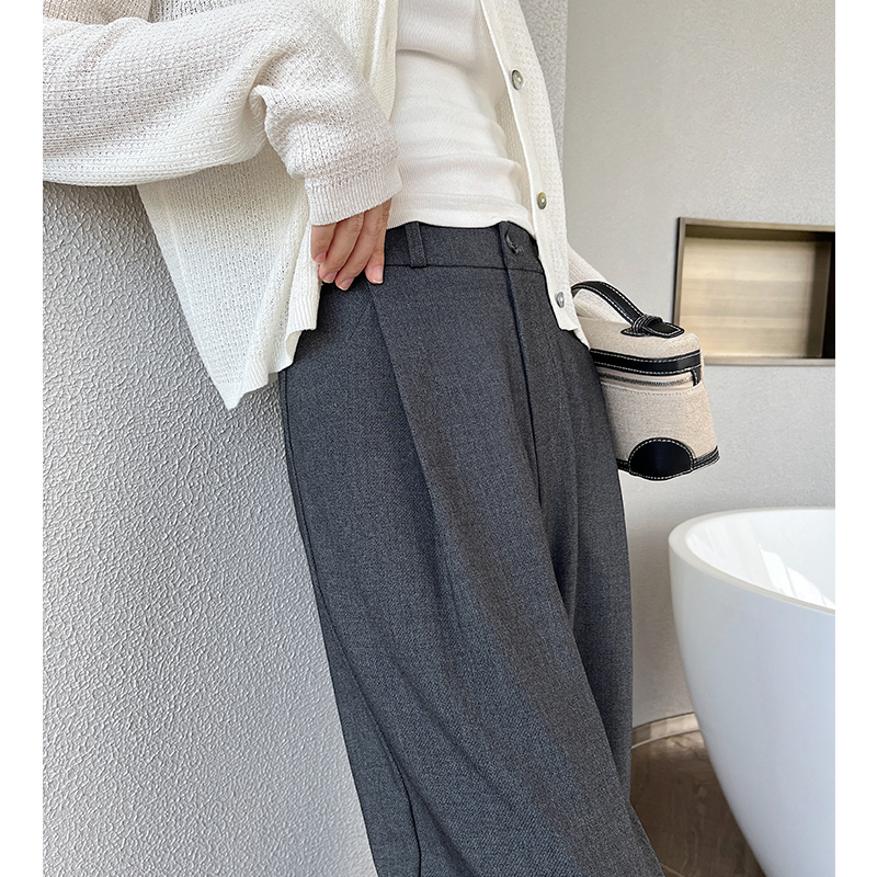 高腰垂感双褶小个子棉羊毛慵懒风直筒宽松 女春秋款 灰色西装 阔腿裤