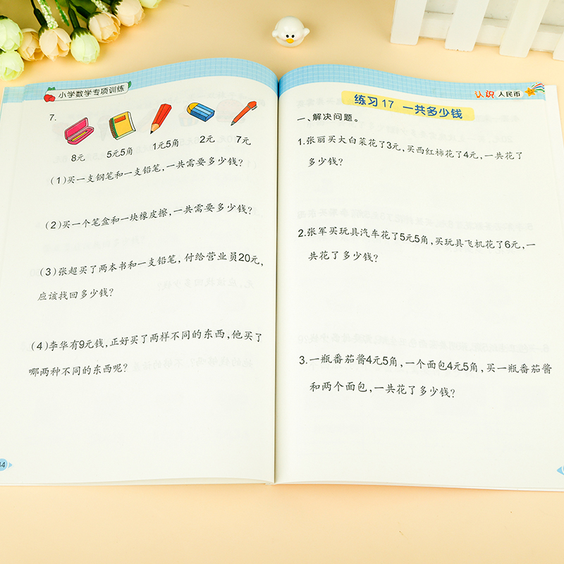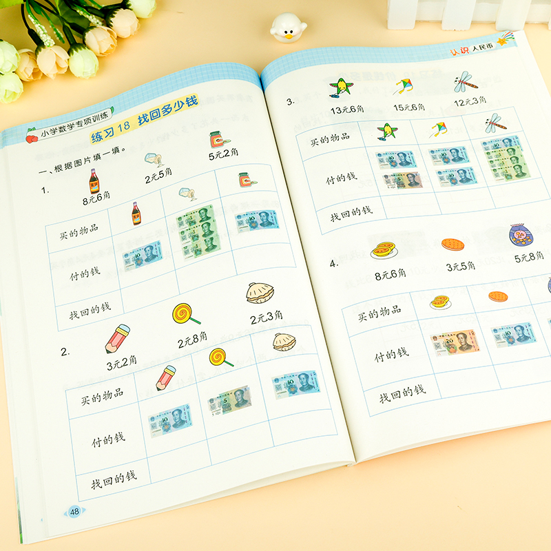 角分单位换算教具同步钱币学具 位置图形找规律小学元 认识人民币一二年级数学专项训练上下册新版 认识钟表和时间思维练习题人教版