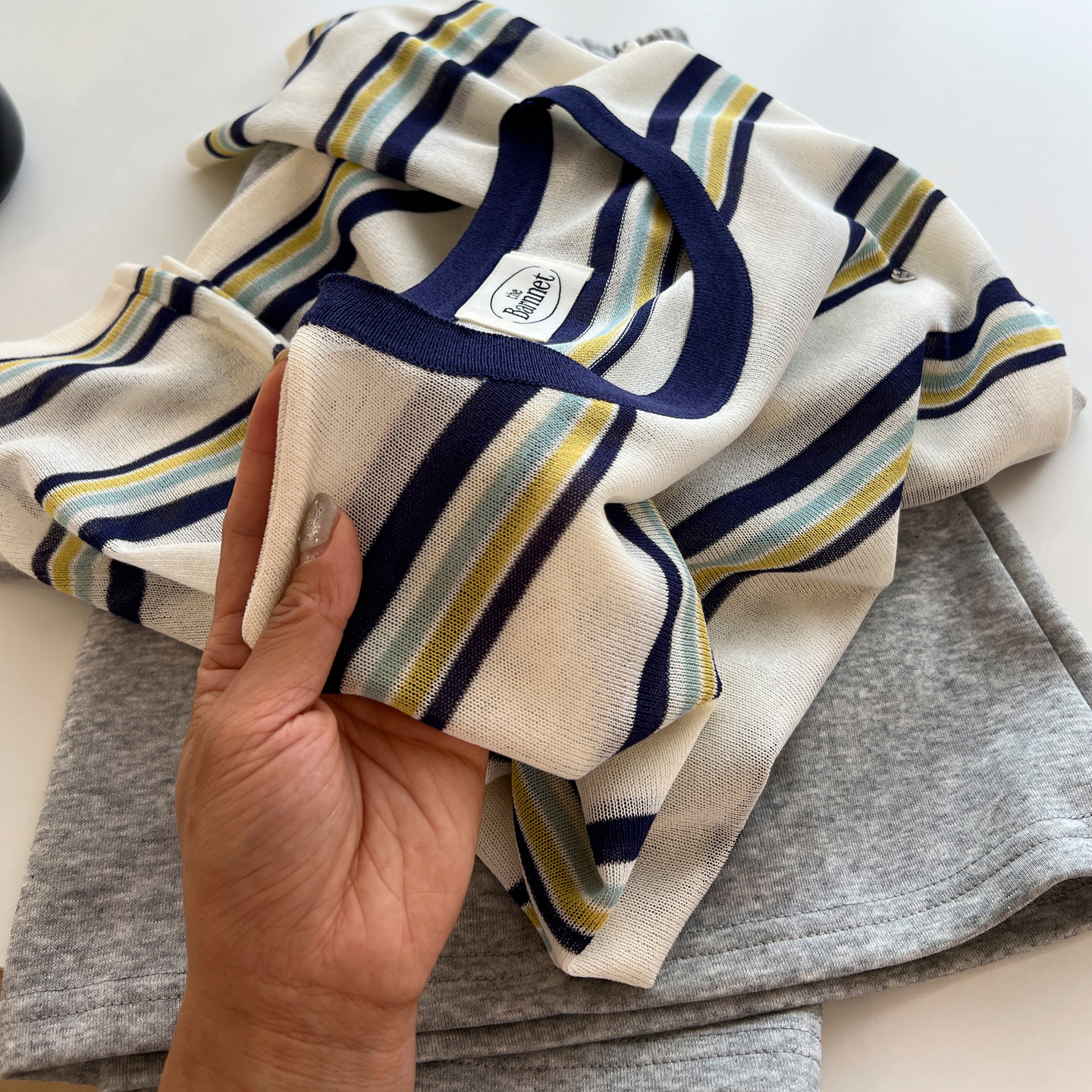 复古条纹圆领长袖 新款 针织衫 上衣夏季 减龄 女宽松半透视防晒衫 韩版