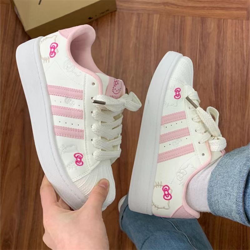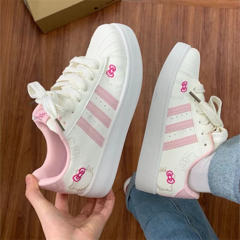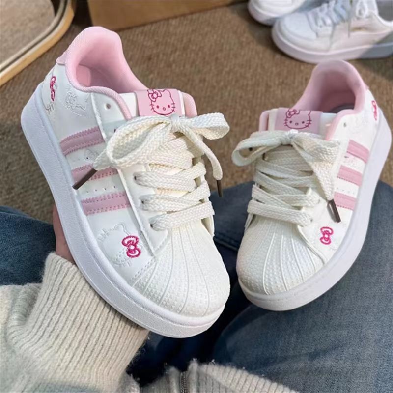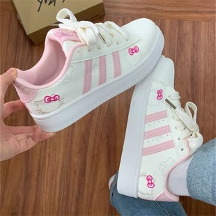 透气低帮小白鞋 女贝壳头校园风小众板鞋 粉白色kitty猫面包鞋 新款