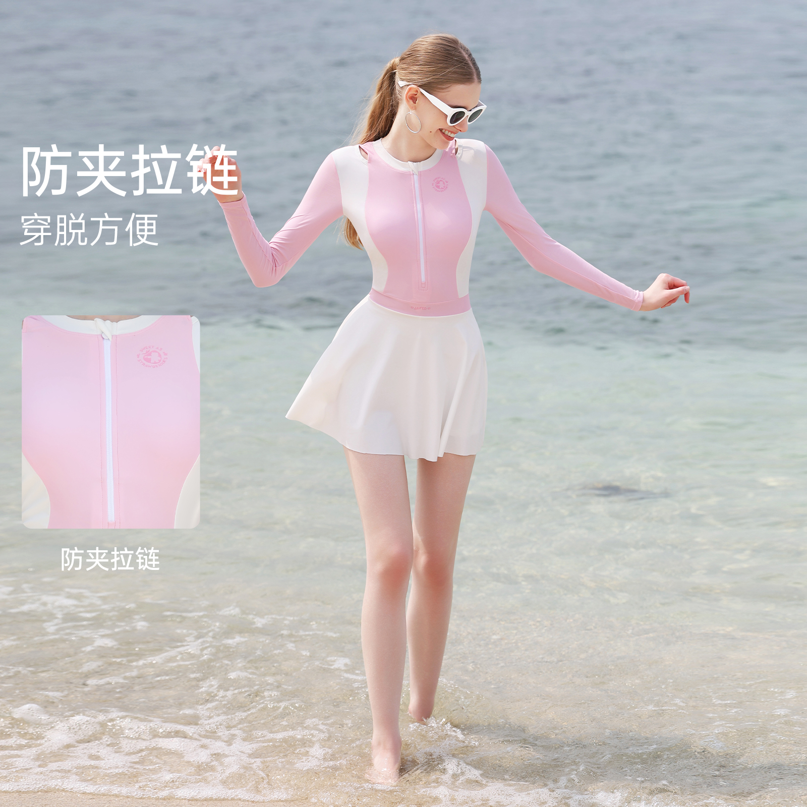 防晒保守学生少女温泉度假泳装 2025新款 长袖 迪士尼泳衣女连体裙款