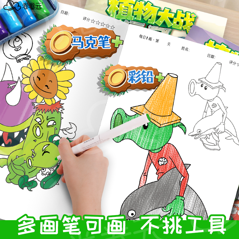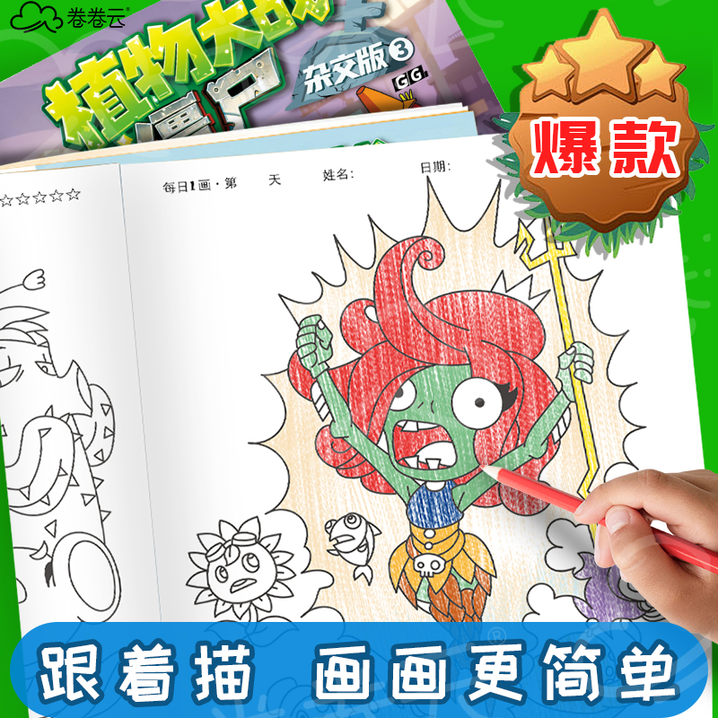 植物大战僵尸描摹本杂交版 动漫图画本儿童画画练习素描临摹本描绘
