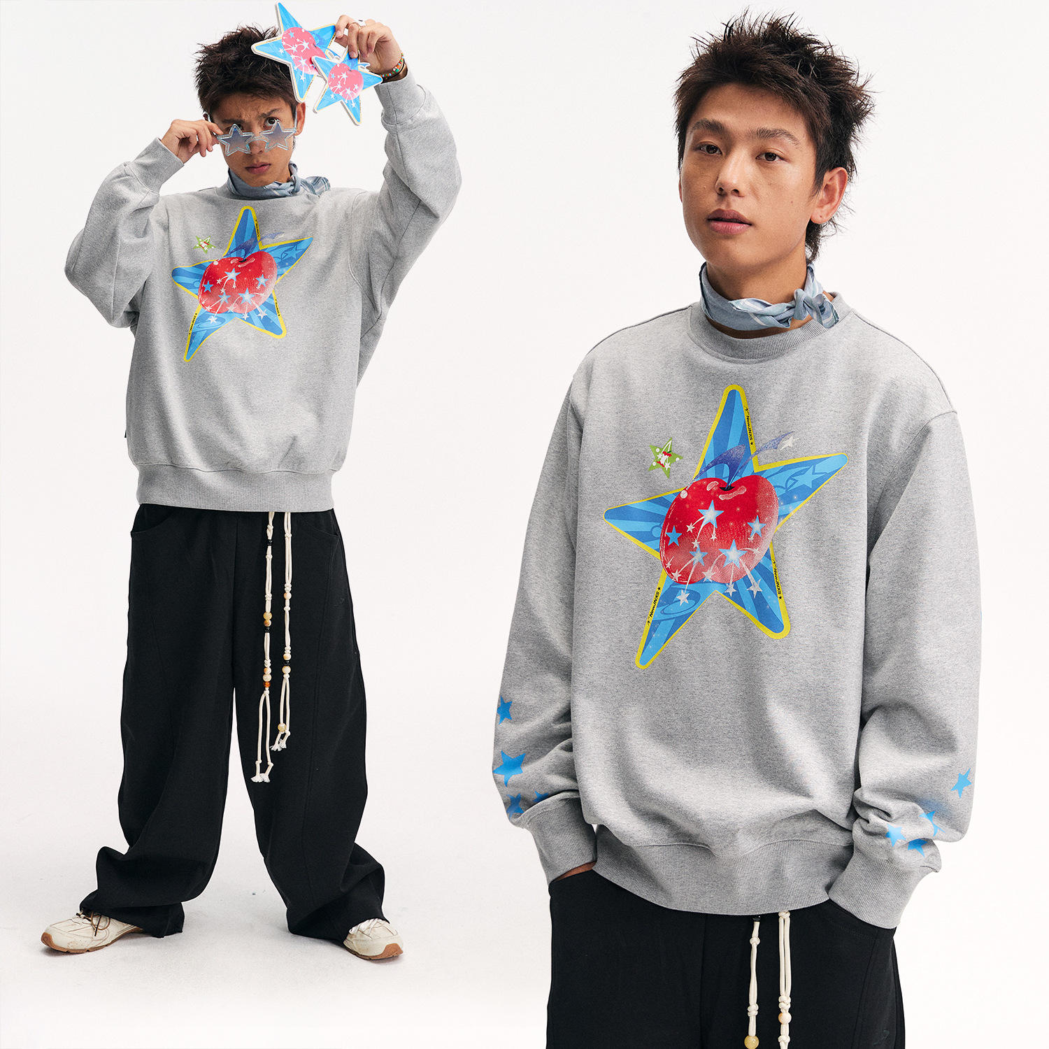 宽松休闲上衣 BODYDREAM老钱卫衣男肌理感圆领套头衫 明星同款