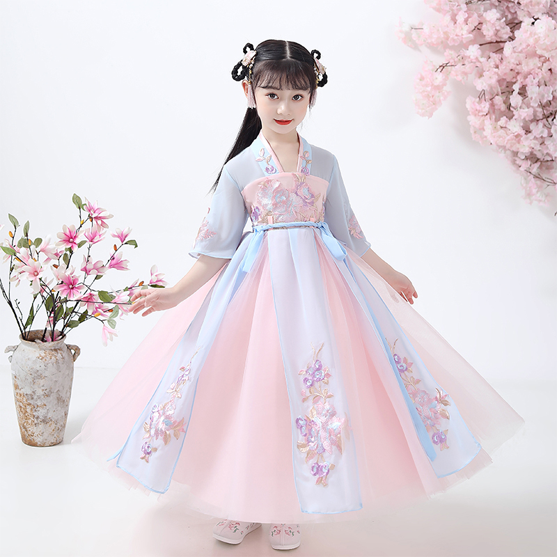 公主裙仙女裙夏季 连衣裙女孩夏季 儿童中国风唐装 汉服女童2025新款
