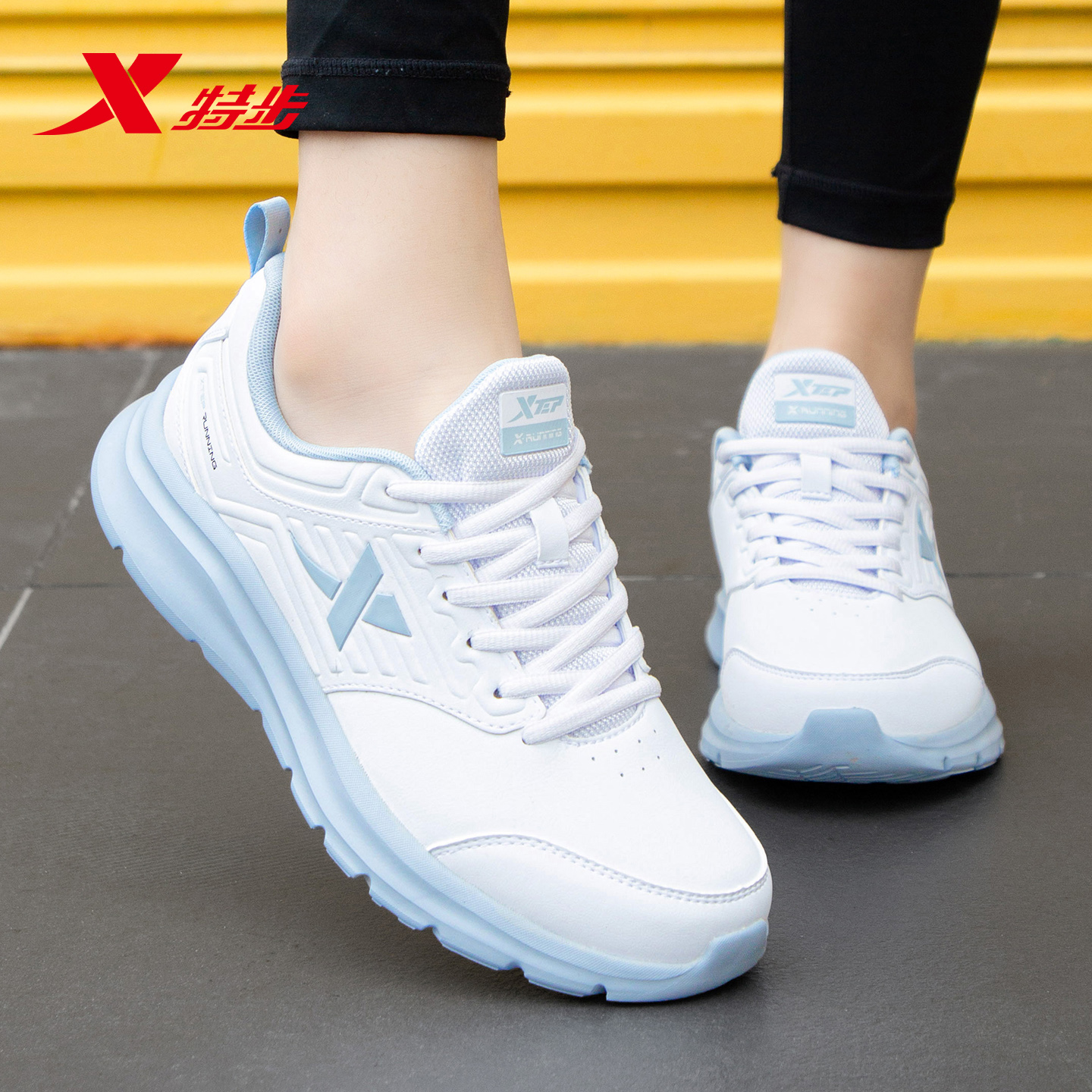 软底减震跑步鞋 特步女鞋 秋冬轻便皮面防水休闲鞋 2025新款 女 运动鞋