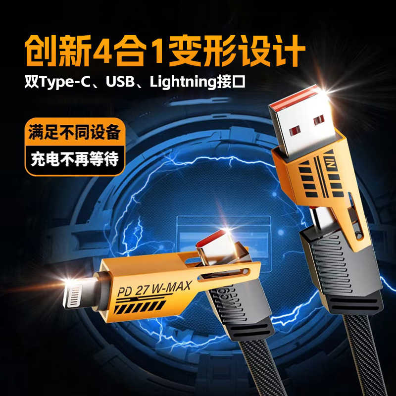 君用车载65W四合一快充数据线PD27W适用华为苹果小米Vivo手机安卓