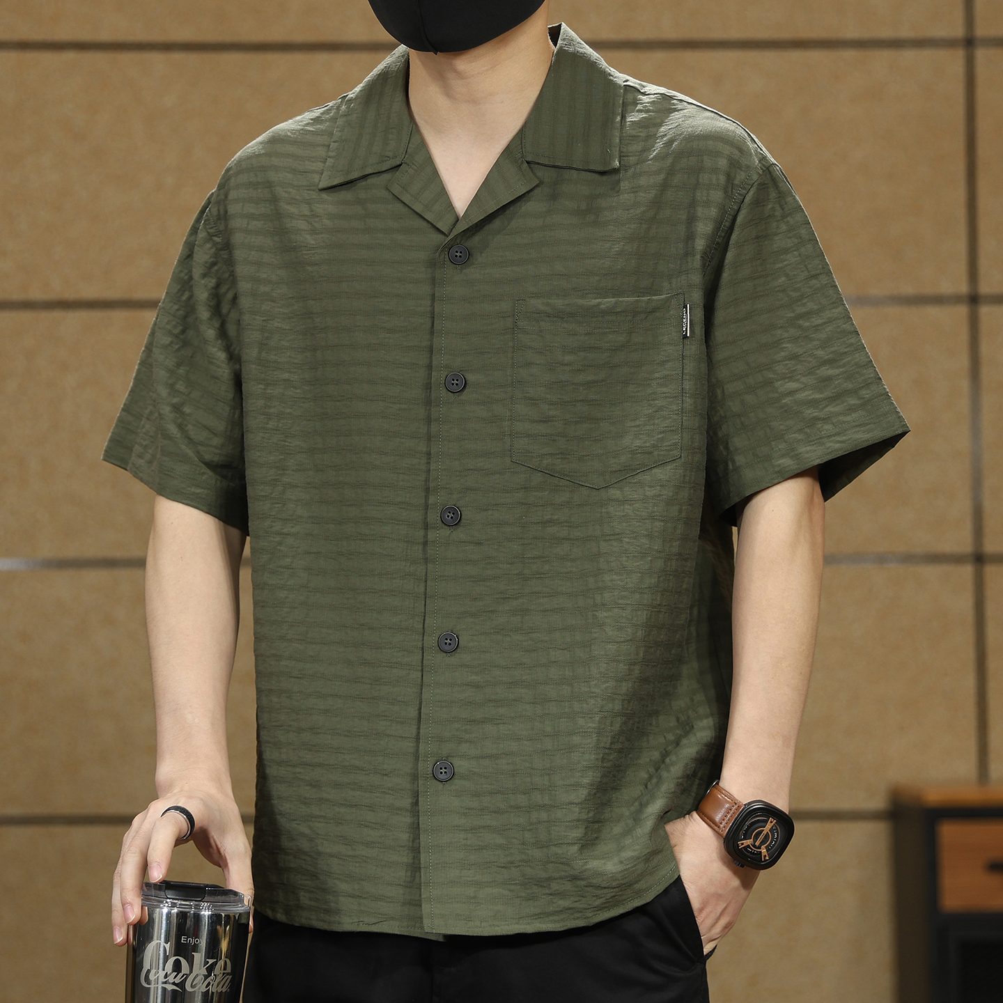 2025新款 莱赛尔天丝古巴领短袖 薄款 男夏季 潮流条纹提花衬衣男 衬衫