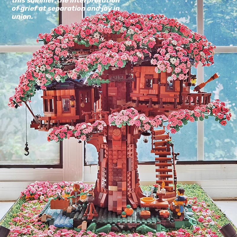 2025成人樱花树屋积木玩具新款 高难度巨大型建筑拼图送女孩子礼物