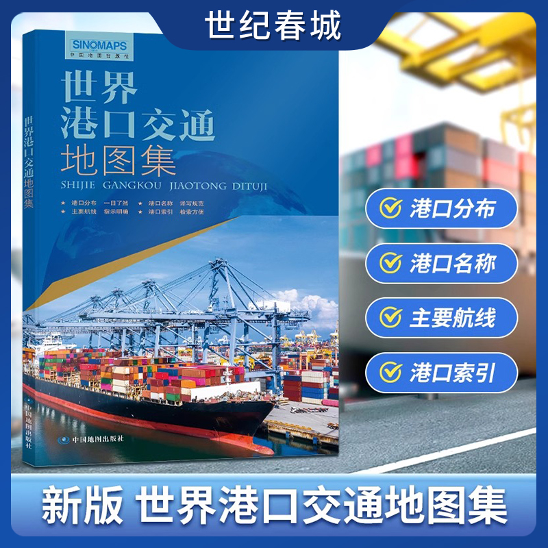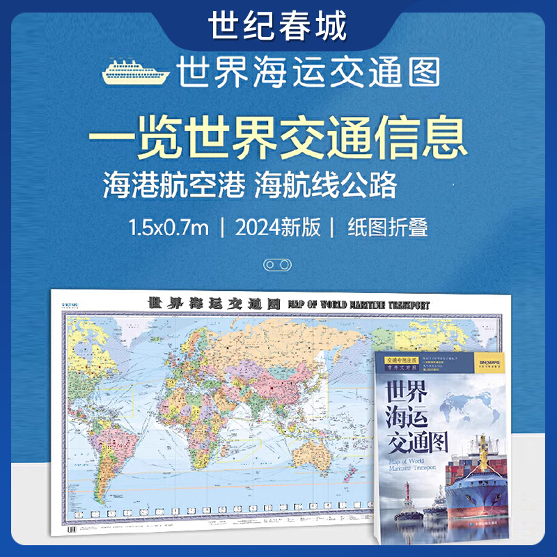 世界海运交通图 2025世界港口交通地图集 港口名称分布航线索引 折挂两用世界地图 中英文对照交通专题挂图 世纪春城