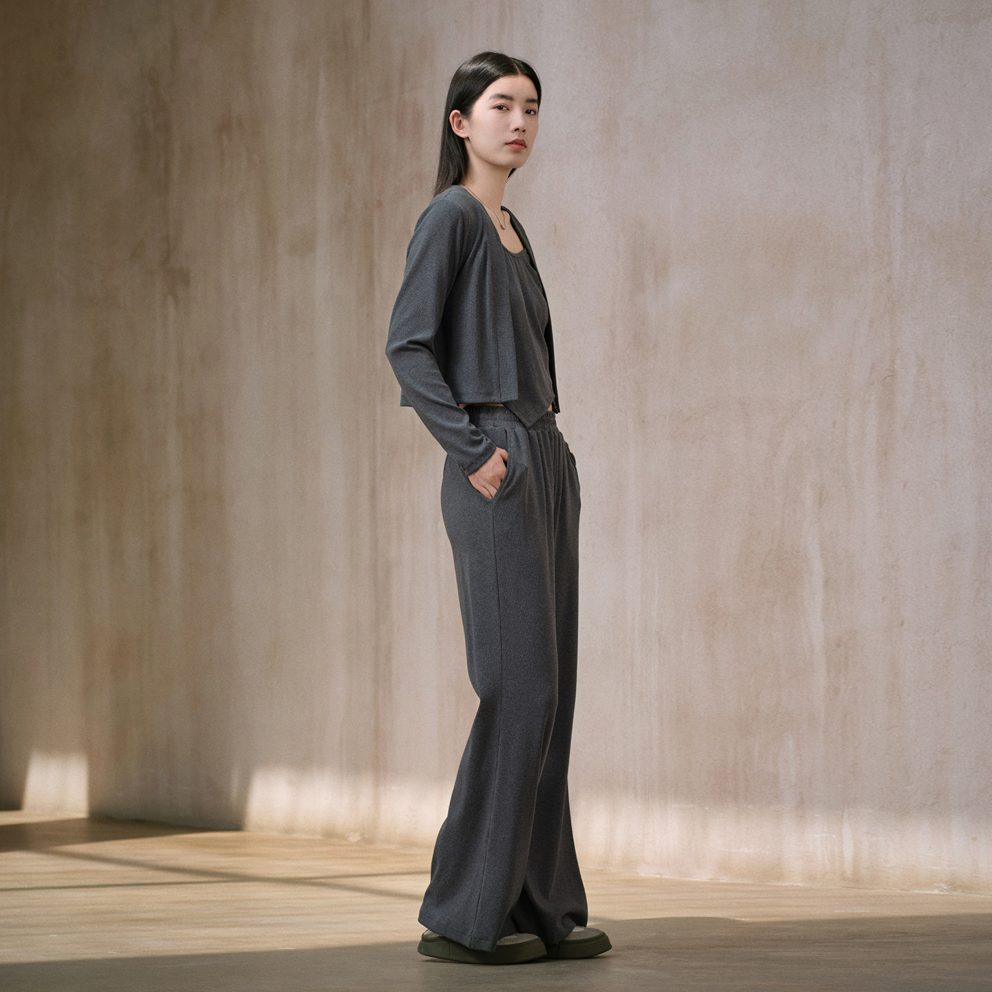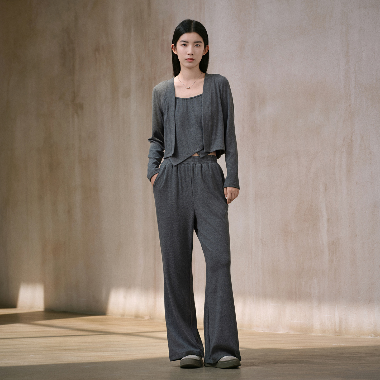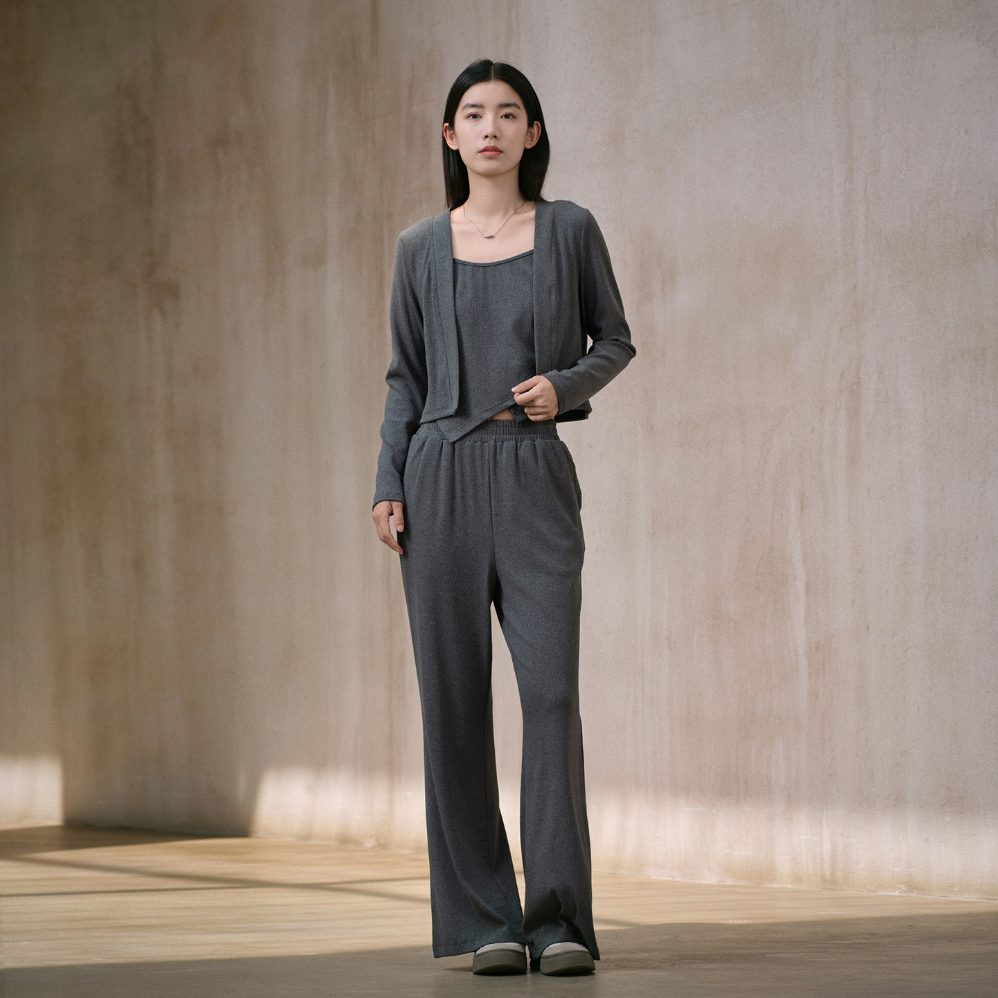 商场同款 新款 阿依莲时尚 女25秋季 三件套上衣阔腿裤 休闲套装