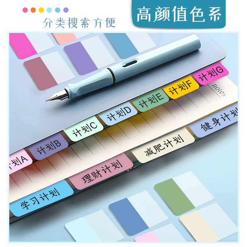 分类n次贴标记引索贴渐变标签索引贴便利贴学生用粘性纸质便签纸文具小条可书写记事贴莫兰迪高颜值书签贴纸