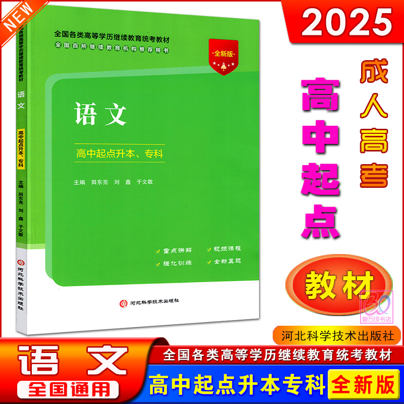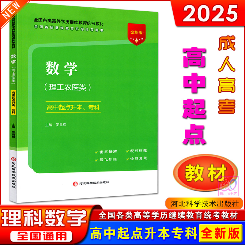 全新版 社 2025成人高考高中起点升专本科成考理工农医类语文理科数学英语教材历年真题模拟试卷高升专高起本用书河北科学技术出版