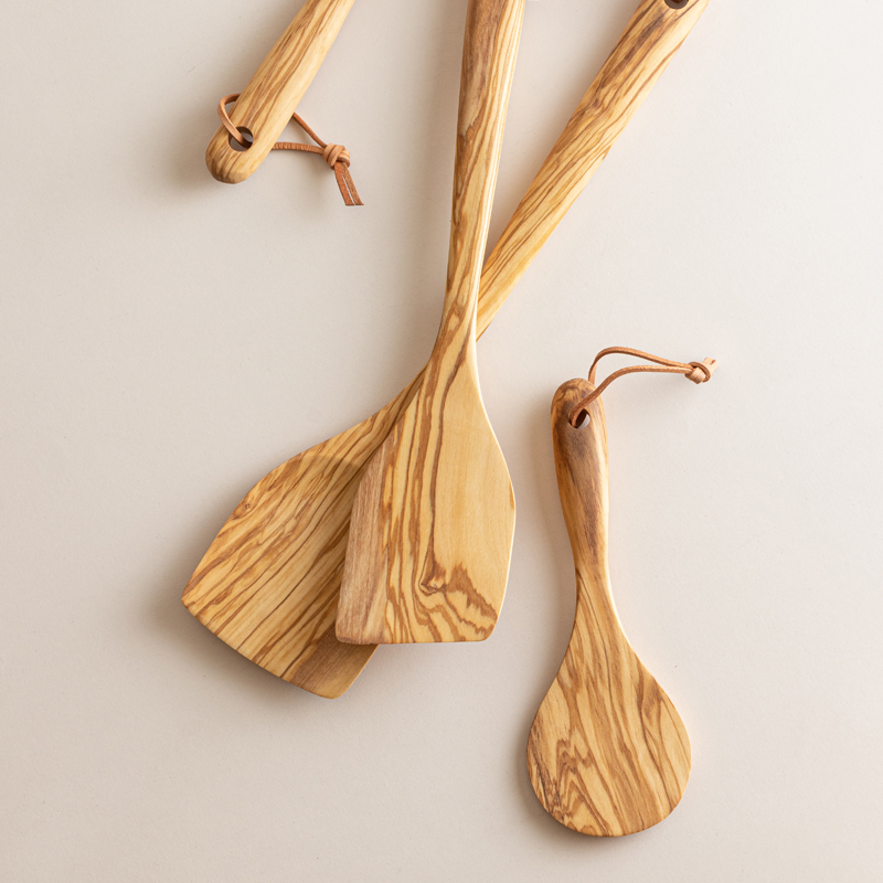 意大利进口橄榄木整木饭勺木铲勺斜铲漏铲炒菜家用耐高温长柄锅铲