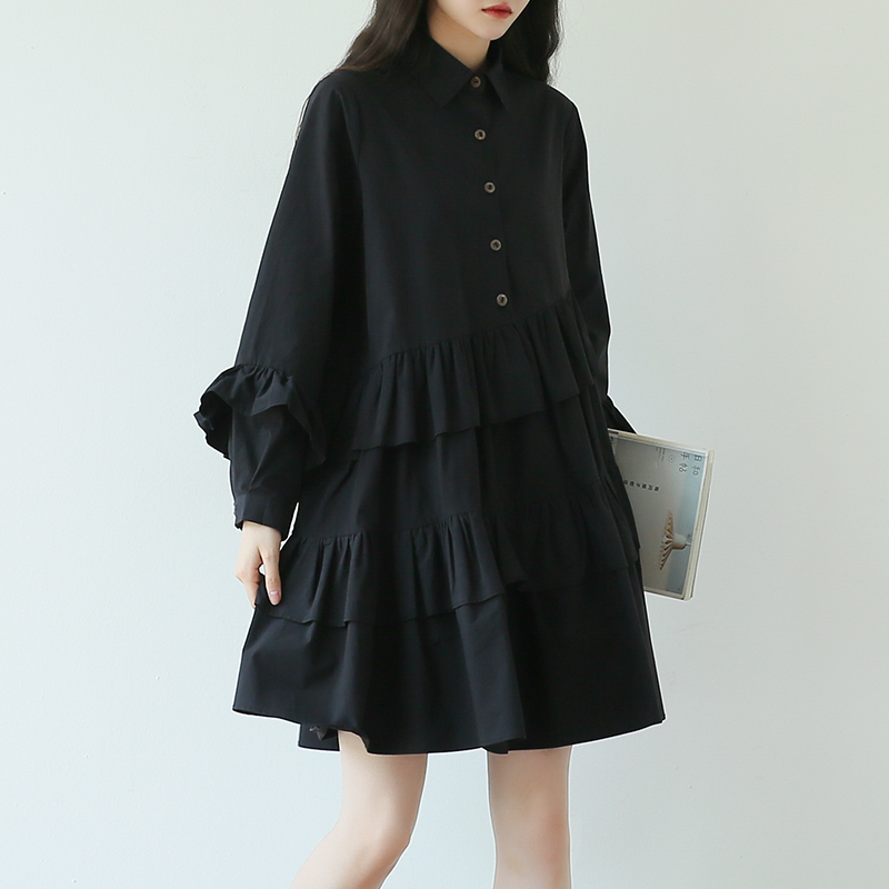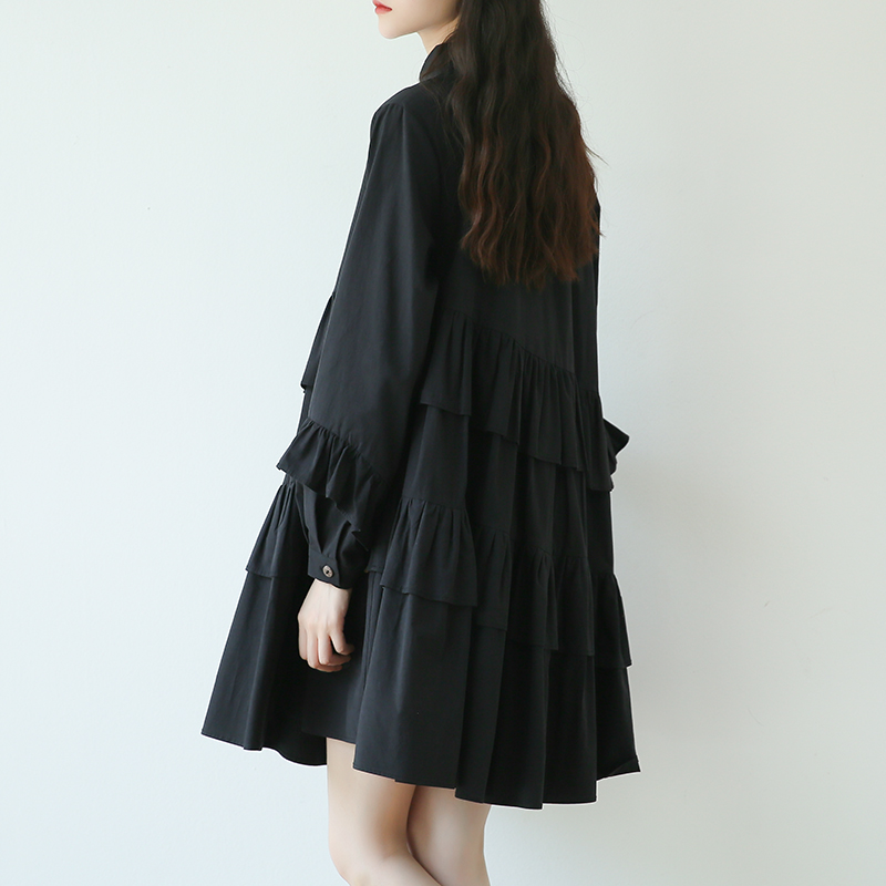 预售赫本风黑色连衣裙女秋2025新款 小个子小黑裙子 拼接木耳边长袖