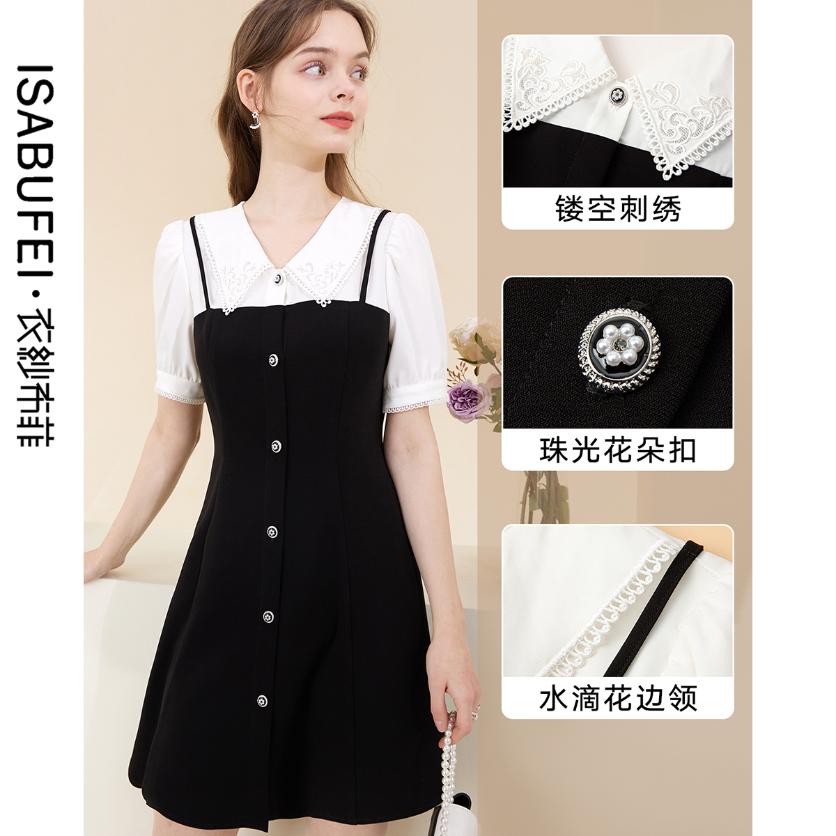 OSA欧莎赫本风假两件连衣裙女气质优雅约会鱼尾裙子 免定金