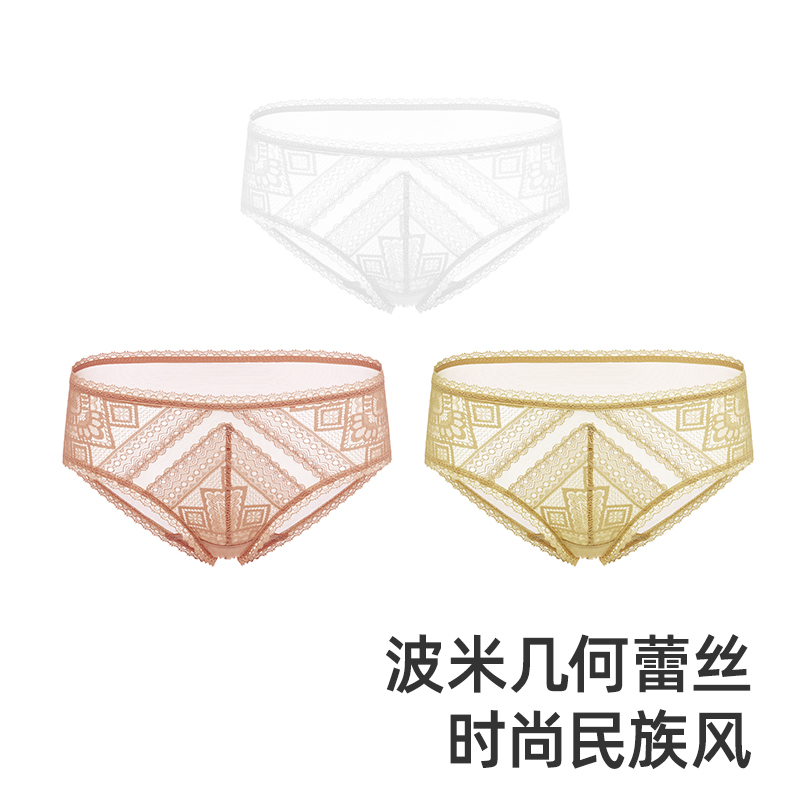 三福女中腰半平角棉内裤 413641 唯美花边成熟少妇柔软舒适内裤