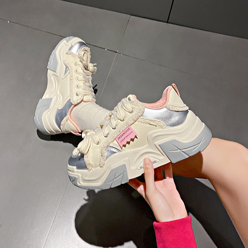 女小个子显高超火爆款 真皮小白鞋 早秋厚底运动老爹鞋 2025新款 女款