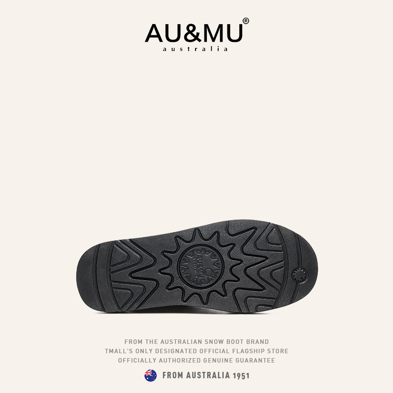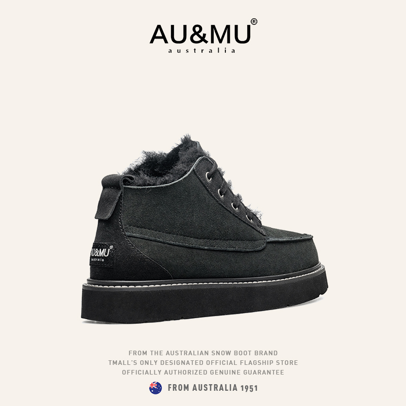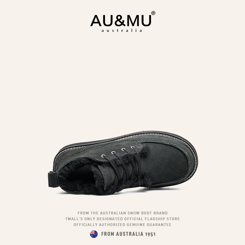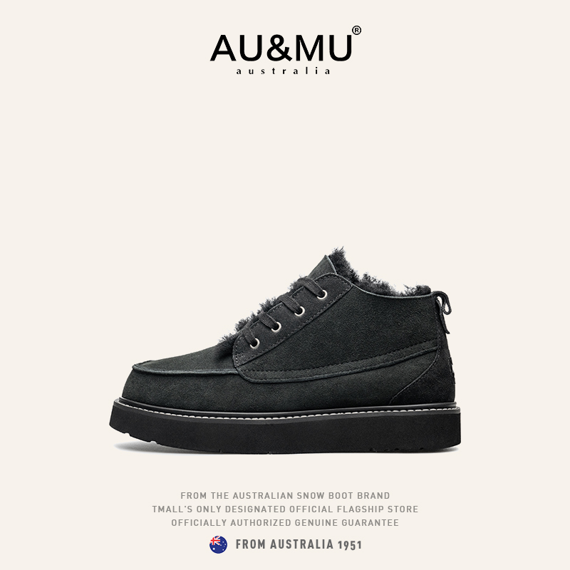 雪地靴 黑色防水防滑加绒棉鞋 真羊皮毛一体 新款 2025冬季 AUMU男士