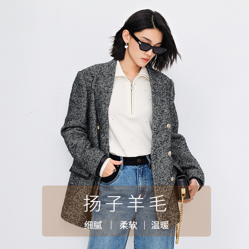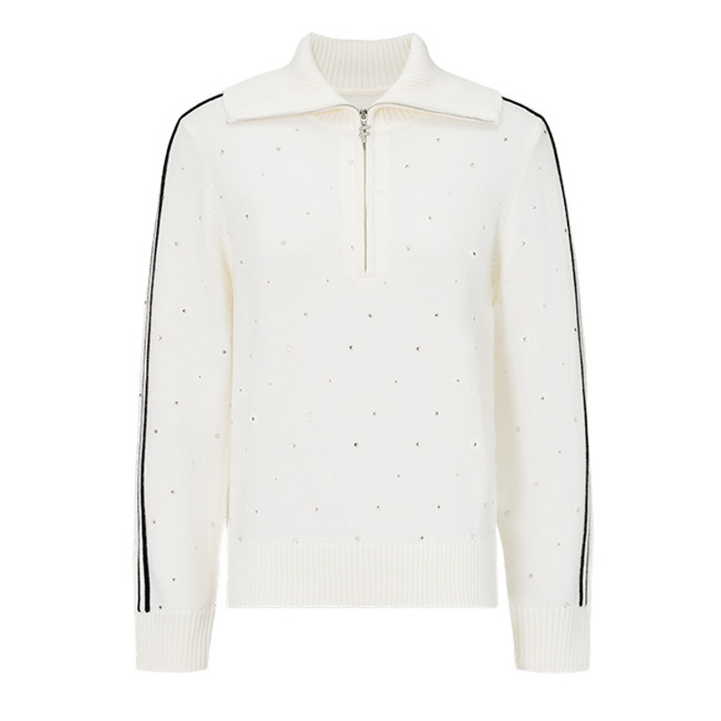 撞色针织衫 新款 FF仿佛冬季 女大翻领烫钻设计感 扬子羊毛