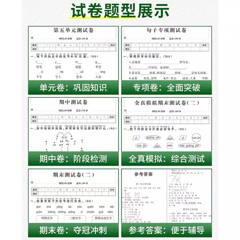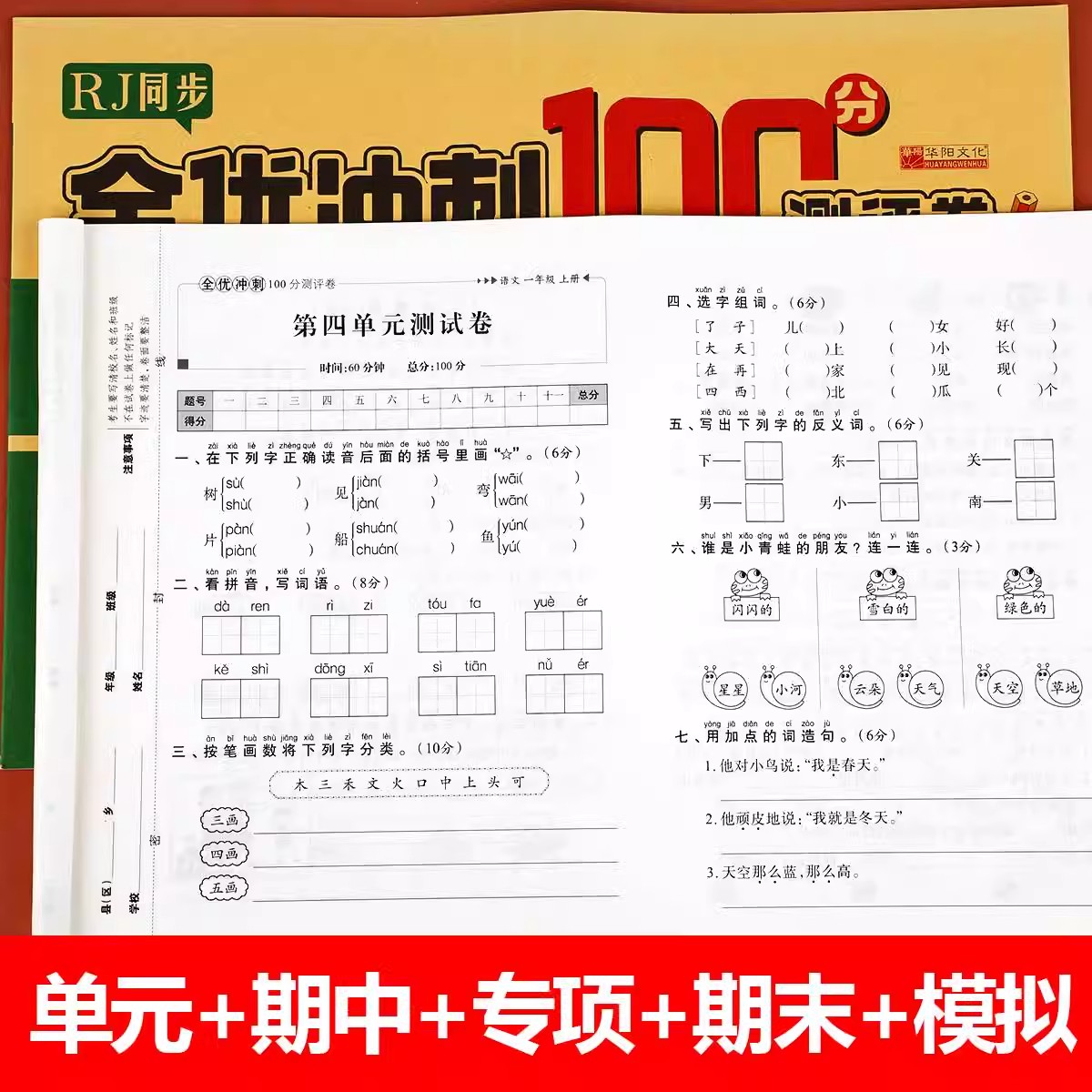 期中 期末 全真模拟 一年级上册全优冲刺100分测评卷 课本教材小学1上测试卷训练题部编版 专项 语文数学试卷全套同步人教版 单元