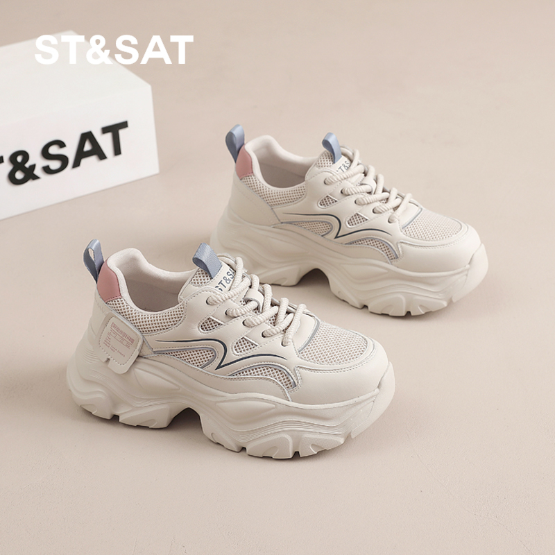 银月 骆驼 情侣厚底增高休闲老爹鞋 香菇双十一