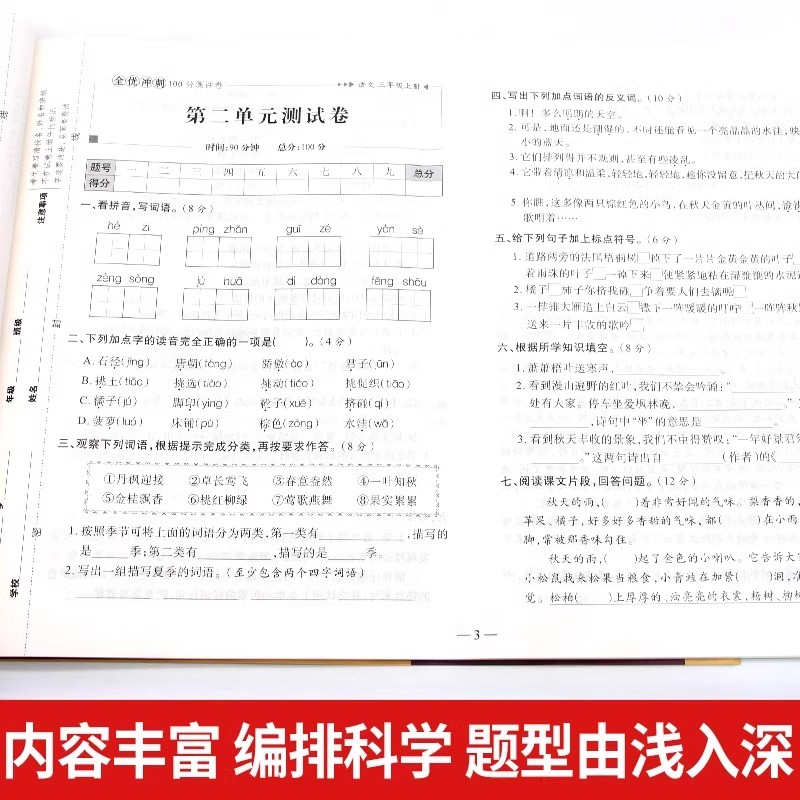 检测期中期末专项练习册 同步训练习册试卷测试卷全套周考月考单元 三年级上册全优冲刺100分测评卷人教部编版 语文数学英语3上人教版