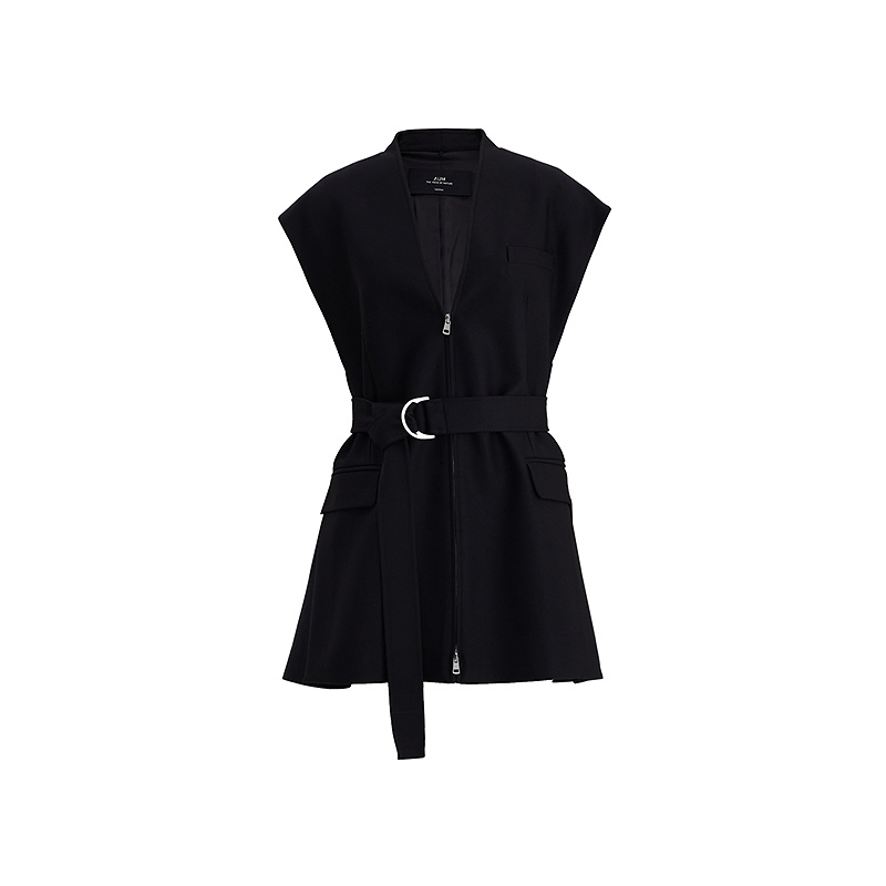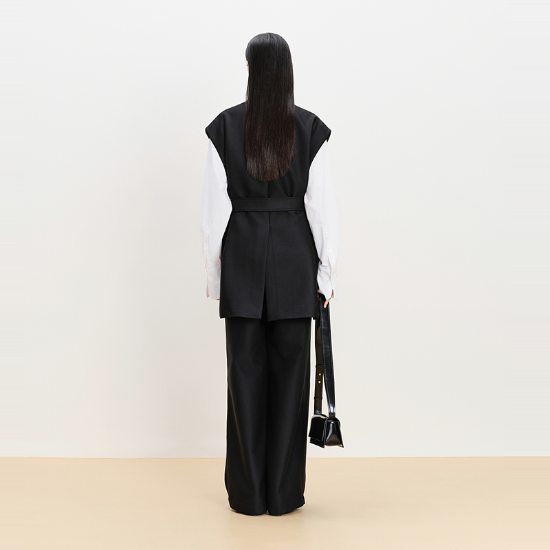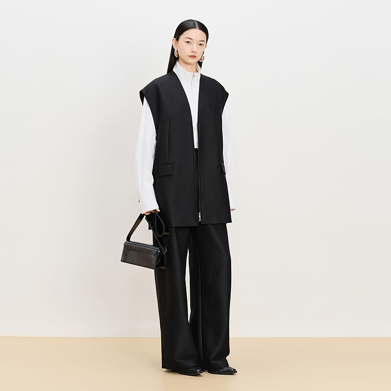 休闲V领双头拉链收腰马甲黑色阔腿裤 AUM噢姆冬季 长裤 轻松套装