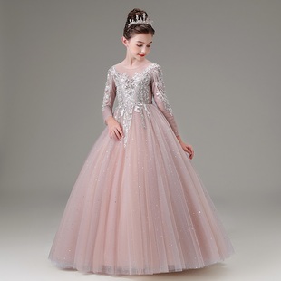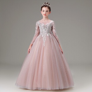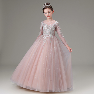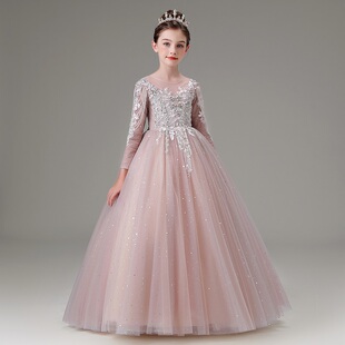 儿童礼服长袖 秋冬高级感女童生日公主裙高端小主持人钢琴演出服装