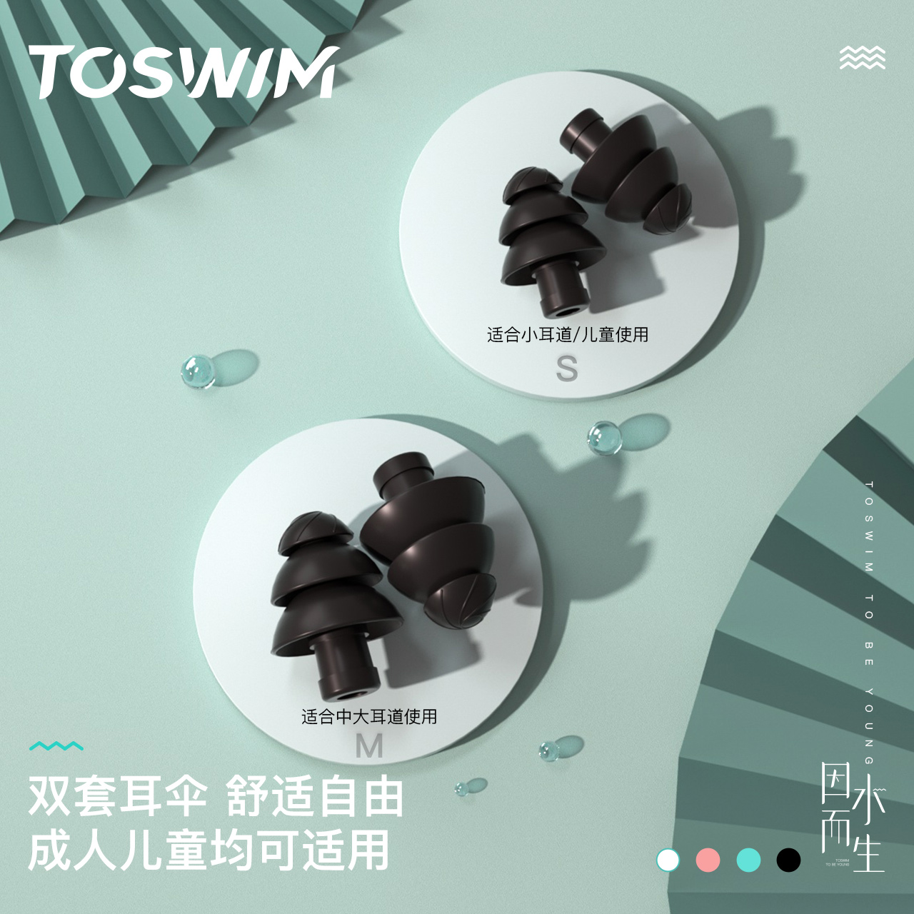 TOSWIM游泳中耳炎防水耳塞成人儿童洗澡防进水鼻夹神器专用装 备
