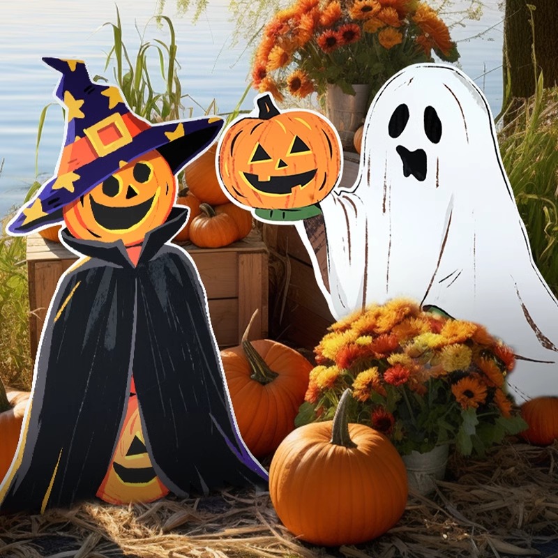 万圣节场景氛围布置kt板南瓜主题装 饰品店铺酒吧门口背景拍照道具