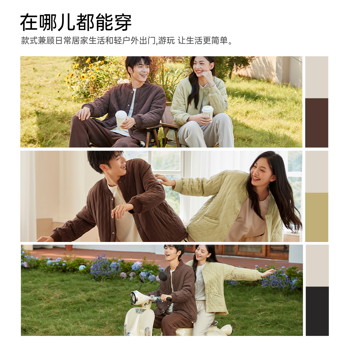 软绵绵 男士 睡衣女款 情侣三层夹棉加绒加厚家居服套装 冬款 冬季