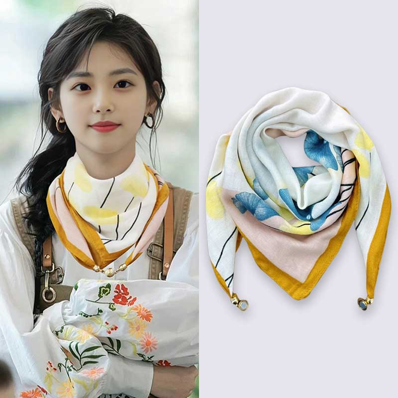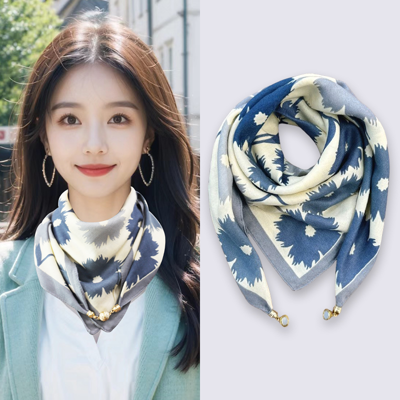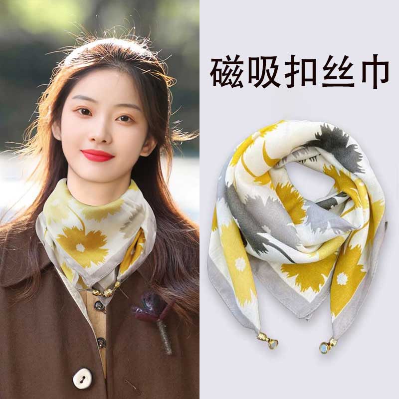 饰新款 时尚 围巾围脖装 方巾冬季 护颈珍珠项链 百搭磁吸扣丝巾女薄款