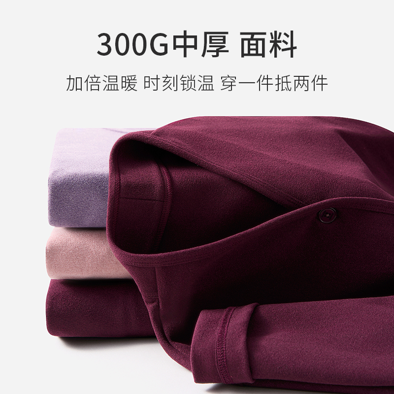 上衣 加绒加厚发热羊毛蚕丝秋衣秋裤 德绒保暖内衣女士套装 秋冬季