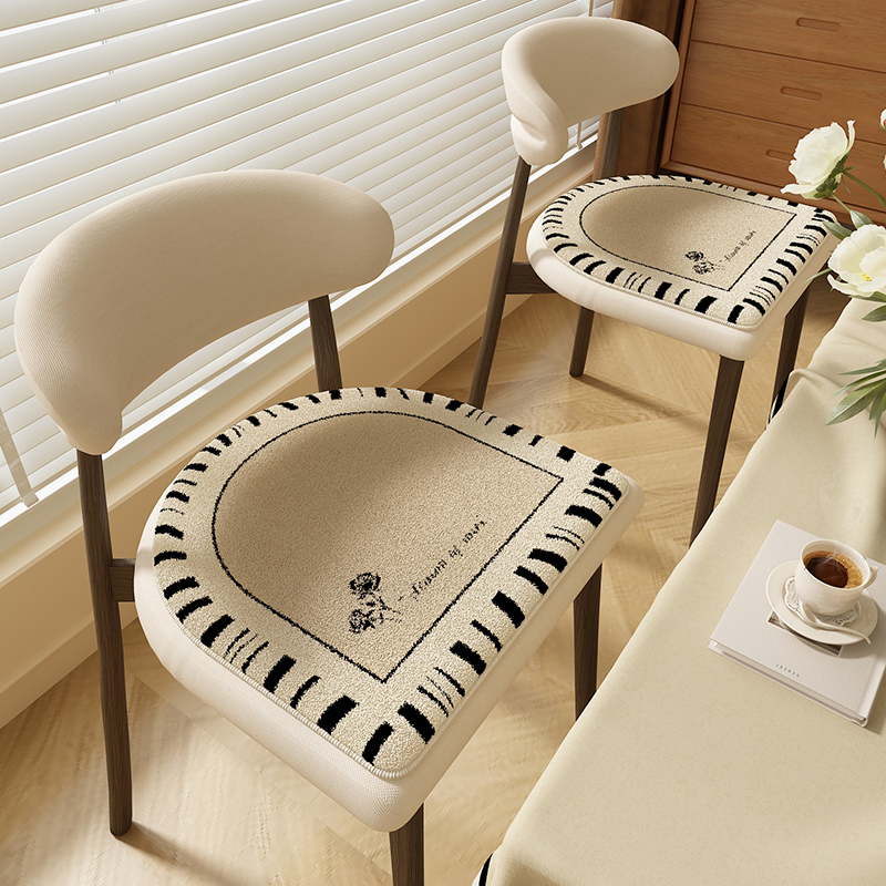 奶油风餐椅毛绒坐垫子秋冬季 防滑保暖凳子屁垫马蹄形座椅垫中古风