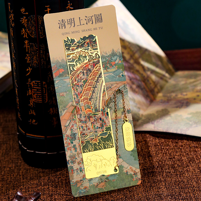 千里江山书签定制古典中国风精美金属书签礼物高档故宫文创奖励学生小礼品黄铜刻字企业学校创意纪念品订制